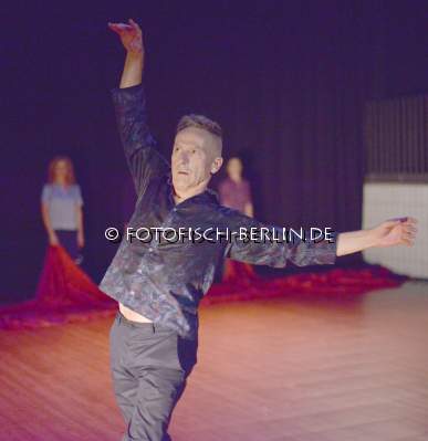 Ort: Uferstudio 1. Tanzcompagnie Rubato. Titel: blue-sky thinking. Urauffuehrung: 14.11.2018. Inszenierung, Choreografie: Jutta Hell Tanz, Choreografie: Dieter Baumann, Alessandra Defazio, Carlos Osatinsky, Anja Sielaff. Komposition, Live Musik: Alexander Nickmann. Licht: Fabian Bleisch. Kostueme: Jutta Hell, Claudia Janitschek. Im Bild: Dieter Baumann
