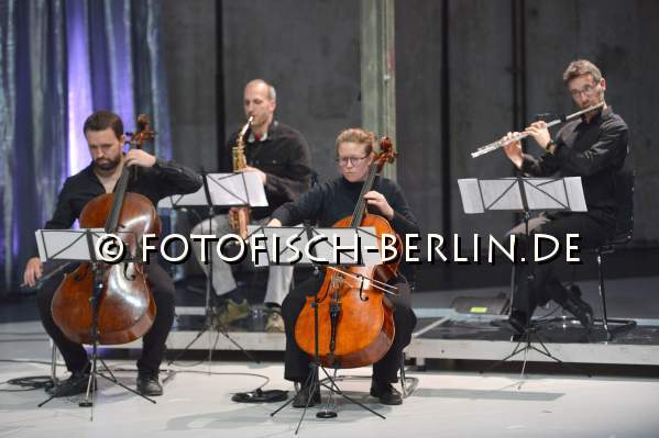 Ort: Sophiensaele Berlin. Company Christoph Winkler. Titel: SPEAK BOLDLY_THE JULIUS EASTMAN DANCE PROJECT. Feminine. Premiere: 06.12.2018. Kuenstlerische Leitung: Christoph Winkler. Musik: Zafraan Ensemble&Guests. Licht: Claas Schwenen. Buehne: Valentina Primavera. Kostueme: Raki Fernandez. Choreografie, Performance: Aloaili Tapu, Jahra Wasasala, Karima Amrani, Lois Alexander, Zen Jefferson, Christofer Medina. Im Bild: Zafraan Ensemble & Guests