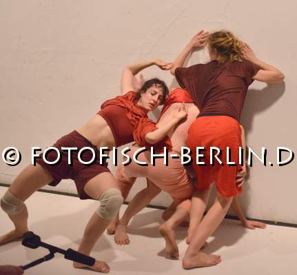 Tanztage Berlin 2019_ Ort: Sophiensaele Berlin. 09.01.19 bis 19.01.19. Mirjam Gurtner. Titel: SKINNED. 09.+11.01.2019. CHOREOGRAFIE: Mirjam Gurtner. SOUNDDESIGN, BUEHNE: Lisa Premke, Fabrizio di Salvo . KOSTUEME: Jacqueline Loekito. LICHTDESIGN: Jerome Bueche. LICHT: Pablo Weber Fernandez. PERFORMANCE: Sophie Arstall, Mirjam Gurtner, Diethild Meier, Christopher Owen Im Bild: Mirjam Gurtner, Diethild Meier, Sophie Arstall, Christopher Owen