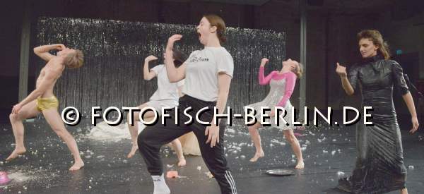 Tanztage Berlin 2019_ Ort: Sophiensaele Berlin. 09.01.19 bis 19.01.19. NINA BURKHARDT. Titel: THE IDEA OF SATISFACTION Pemiere: 09.01.2019. CHOREOGRAFIE, KONZEPT, TECHNIK, SOUNDDESIGN: Nina Burkhardt. KOSTUEME: Lena Englert, Nina Burkhard. TANZ, PERFORMANCE: Lina Georgiewa, Julie Savery, Lena Struetzke, Denis Thuille, Matilde Flor Usinger, Eva Weibel. Im Bild: Lina Georgiewa, Julie Savery, Lena Struetzke, Denis Thuille, Matilde Flor Usinger, Eva Weibel