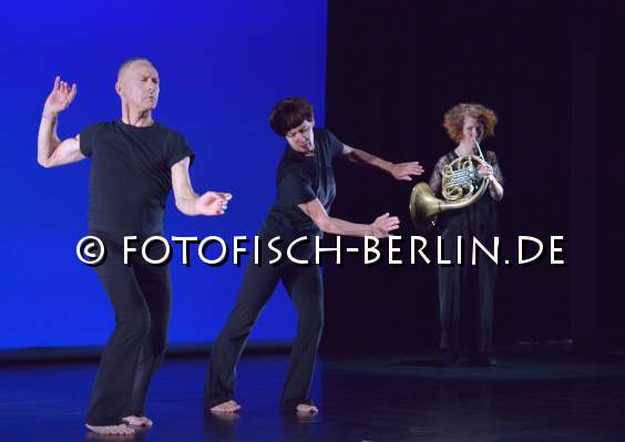 Ort: Akademie der Kuenste, Hanseatenweg. Floris Floridis, Jeanine Meerapfel. Titel: MOVING SAND_TOPOS. Audiovisuelles Essay im Rahmen von "Wo kommen wir hin". Premiere: 29.05.2019. Regie: Jeanine Meerapfel. Licht: Siegfried Paul. Kamera: Johann Feindt. Horn: Elena Kakaliagou. Klarinetten: Floros Floridis. Tanz: Jutta Hell, Dieter Baumann.