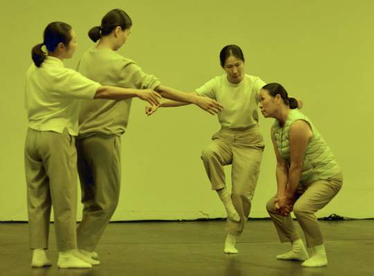 Ort: Sophiensaele Berlin. JEE-AE LIM. Titel: MOUNTAIN,TREE,CLOUD AND TIGER. Premiere: 03.10.2019. Konzept, Choreografie: Jee-Ae Lim. Musik: Kyan Bayani. Licht: Sandra Blatterer. Buehne: Jonas Maria Droste, Martin Siewenke. Kostuem: Andrea Kraenzlin. Performance: Jisun Hagen, Jee-Ae Lim, Kyong Soo Shin-Nolte, Ok-Hi Kim-Wehnes. Im Bild: Jisun Hagen, Jee-Ae Lim, Kyong Soo Shin-Nolte, Ok-Hi Kim-Wehnes
