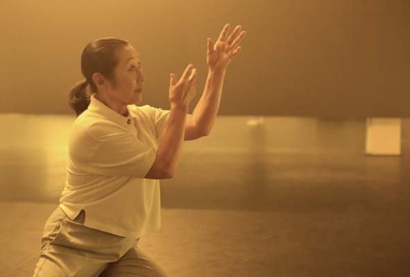 Ort: Sophiensaele Berlin. JEE-AE LIM. Titel: MOUNTAIN,TREE,CLOUD AND TIGER. Premiere: 03.10.2019. Konzept, Choreografie: Jee-Ae Lim. Musik: Kyan Bayani. Licht: Sandra Blatterer. Buehne: Jonas Maria Droste, Martin Siewenke. Kostuem: Andrea Kraenzlin. Performance: Jisun Hagen, Jee-Ae Lim, Kyong Soo Shin-Nolte, Ok-Hi Kim-Wehnes. Im Bild: Ok-Hi Kim-Wehnes