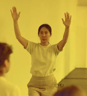 Ort: Sophiensaele Berlin. JEE-AE LIM. Titel: MOUNTAIN,TREE,CLOUD AND TIGER. Premiere: 03.10.2019. Konzept, Choreografie: Jee-Ae Lim. Musik: Kyan Bayani. Licht: Sandra Blatterer. Buehne: Jonas Maria Droste, Martin Siewenke. Kostuem: Andrea Kraenzlin. Performance: Jisun Hagen, Jee-Ae Lim, Kyong Soo Shin-Nolte, Ok-Hi Kim-Wehnes. Im Bild: Jee-Ae Lim