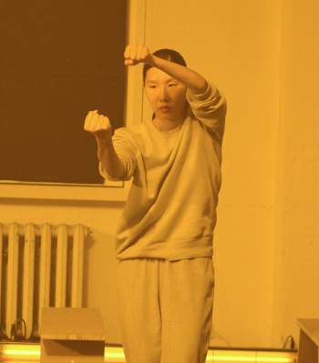Ort: Sophiensaele Berlin. JEE-AE LIM. Titel: MOUNTAIN,TREE,CLOUD AND TIGER. Premiere: 03.10.2019. Konzept, Choreografie: Jee-Ae Lim. Musik: Kyan Bayani. Licht: Sandra Blatterer. Buehne: Jonas Maria Droste, Martin Siewenke. Kostuem: Andrea Kraenzlin. Performance: Jisun Hagen, Jee-Ae Lim, Kyong Soo Shin-Nolte, Ok-Hi Kim-Wehnes. Im Bild: Jisun Hagen,