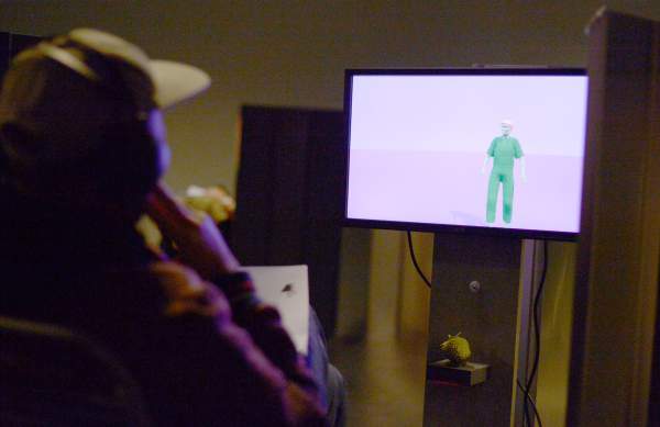 Ort: Sophiensaele Berlin. Festival_DAS OST WEST DING. 15.10.-10.11.2019. Caroline Creutzburg. Titel: WABE ( ) OST. Digital Media Installation. Computer-Avatare im Gespraech. Konzept, kuenstlerische Leitung: Caroline Creutzburg. Cross Media and technical art: Todor Stoyanov. Raum: David Reiber Otalora. Im Bild: Eroeffnung mit Publikum.