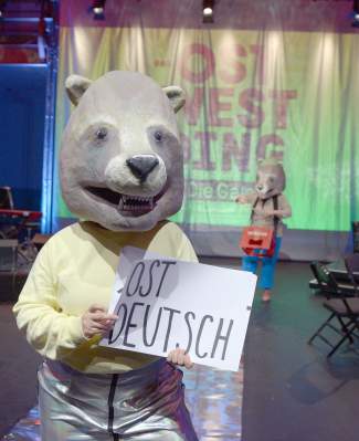Ort: Sophiensaele Berlin. Festival_DAS OST WEST DING. 15.10.-10.11.2019. DIE GALA. GESPRAECHSREVUE. 01.11.2019. Mit Beitraegen von: Barbara Gronau, Anett Groeschner, hannsjana, Mai-Phuong Kollath, Adriana Lettrari, Luise Meier, Patrice G. Poutrus, Tucke Royale, Kareth Schaffer, Rike Flaemig, Nadja Schallenberg, Nele Stuhler, Matthias Vernaldi, Sarah Mouwani, Jessy James La Fleur,Imran Ayata, Katrin hattenhauer. Moderation: Gisela Sommer und Inge Borg. MUSIK: Sebastian Bertram Trio.