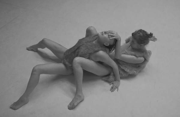 Ort: Sophiensaele Berlin. Tanztage Berlin 2020. 08.-18.01.2020. Suvi Kemppainen, Josefine Muehle. Titel: A CHILD HAS BEEN BEATEN. Premiere: 13.01.2020. Sound, Licht, Video: Suvi Kemppainen, Josefine Muehle. Gastperformance: Camille Kaese. Choreografie, Performance: Suvi Kemppainen, Josefine Muehle. Im Bild: Suvi Kemppainen, Josefine Muehle.