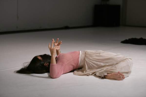 Ort: Sophiensaele Berlin. Tanztage Berlin 2020. 08.-18.01.2020. Areli Moran. Titel: LA POSTAL DE NUESTRA EXISTENCIA. Premiere: 16.01.2020. Konzept, Choreografie, Performance: Areli Moran. Im Bild: Szenenfoto mit Areli Moran.