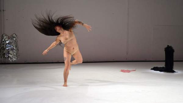 Ort: Sophiensaele Berlin. Tanztage Berlin 2020. 08.-18.01.2020. Areli Moran. Titel: LA POSTAL DE NUESTRA EXISTENCIA. Premiere: 16.01.2020. Konzept, Choreografie, Performance: Areli Moran. Im Bild: Szenenfoto mit Areli Moran.