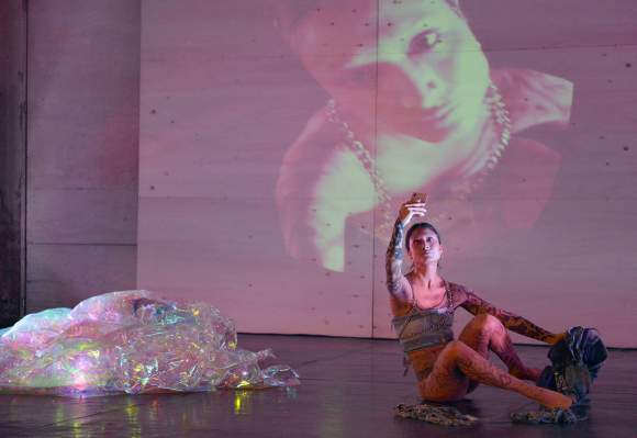 Ort: Sophiensaele Berlin. Tanztage Berlin 2020. 08.-18.01.2020. Maque Pereyra. Titel: SOLAR THRESHOLD. Premiere: 16.01.2020. Konzept, Kostuem, Performance: Maque Pereyra. Sound: Mars Dietz. Licht: Hanna Kritten tangsoo. Performance: Pauline Bulin,Claudia Sáez Fernández, Sharón Mercado, Maque Pereyra, Anisha Mueller, Zuréh Jaramillo Im Bild: Maque Pereyra