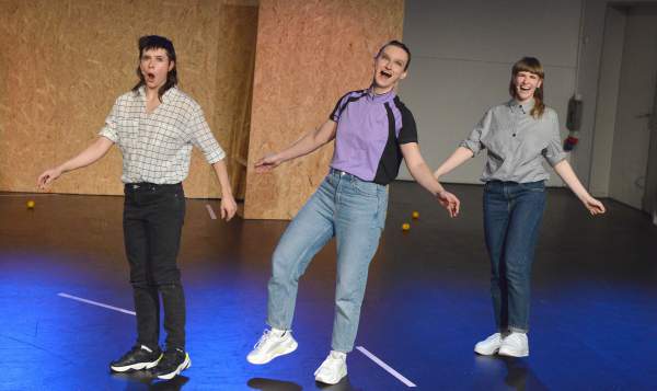 Ort: Sophiensaele Berlin. Sheena McGrandles. Titel: FLUSH. Premiere: 06.02.2020. KONZEPT, REGIE: Sheena McGrandles. SOUND: Stellan Veloce. LICHTDESIGN: Elliott Cennetoglu. BUEHNE, KOSTUEM: Michiel Keuper, Martin Sieweke. PERFORMANCE: Sheena McGrandles, Annegret Schalke, Ewa Dziarnowska. Im Bild: Sheena McGrandles, Ewa Dziarnowska,Annegret Schalke