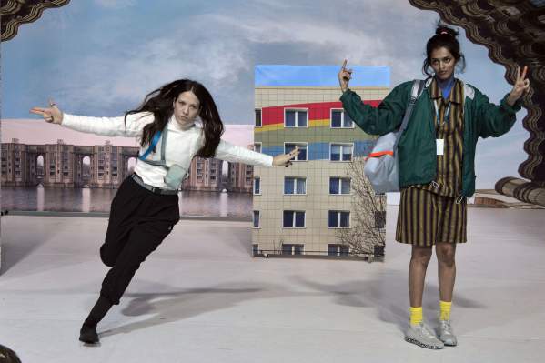Ort: Sophiensaele Berlin. Cecile Bally. Titel: THE END OF THE ROAD. Premiere: 13.02.2020. KONZEPT, CHOREOGRAFIE, PERFORMANCE: Cecile Bally. SOUNDdesign: Jassem Hindi. LICHTDESIGN: Emma Juliard. BUEHNENBILD: Pablo Ramon Benitez. KOSTUEME: Sara Wendt. RAPtitel: Haszcara. PERFORMANCE: Julia Plawgo, Layton Lachmann, Sunayana Shetty. Im Bild: Julia Plawgo, Sunayana Shetty,