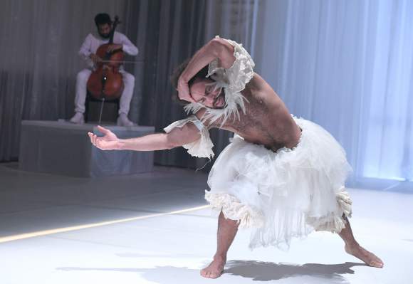 Ort: Ballhaus Naunynstraße. Jasco Viefhues. Titel: Complex of Tensions. Urauffuehrung: 09.10.2020. Choreografie: Ronni Maciel. Text & Regie: Jasco Viefhues. Buehnenbild: Marian Nketiah. Kostuem: Andreina Vieira dos Santos. Lichtdesign: Emilio Cordero Checa. Musik/ Performance: Eurico Ferreira Mathias. Performance: Aloysius Itoka, Ronni Maciel.