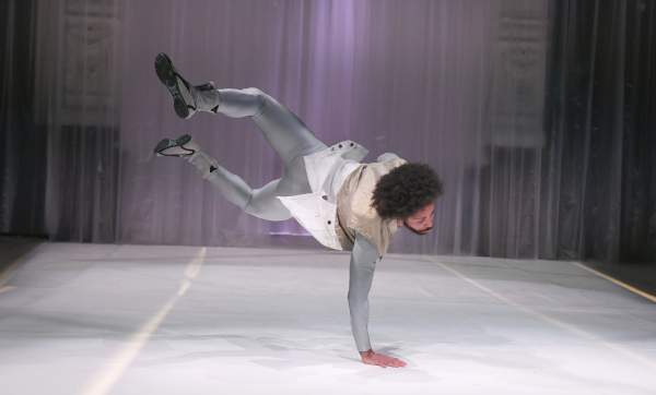 Ort: Ballhaus Naunynstraße. Jasco Viefhues. Titel: Complex of Tensions. Urauffuehrung: 09.10.2020. Choreografie: Ronni Maciel. Text & Regie: Jasco Viefhues. Buehnenbild: Marian Nketiah. Kostuem: Andreina Vieira dos Santos. Lichtdesign: Emilio Cordero Checa. Musik/ Performance: Eurico Ferreira Mathias. Performance: Aloysius Itoka, Ronni Maciel. Im Bild: Ronni Maciel