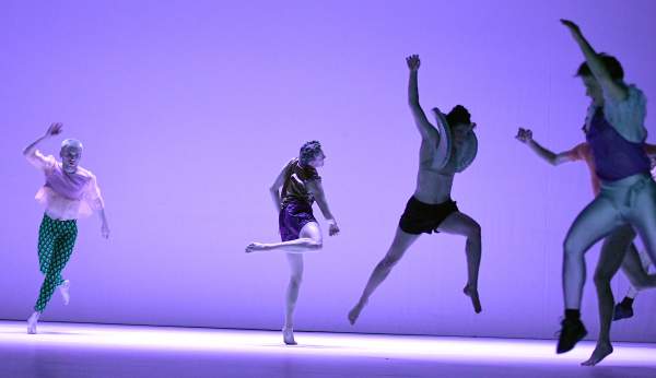 Titel: Ayelen Parolin_RUDA_WEG. Deutschlandpremiere: 06.08.2021. Choreografie: Ayelen Parolin. Musik u. Piano: Lea Petra. Licht: Laurence Halloy. Koestueme: Wim Muyllaert. Tanz: Daniel Barkan, Baptiste Cazaux, Jeanne Colin, Piet Defrancq, Daan Jaartsveld, Dan Mussett, Bianca Zueneli. Im Bild: Ensemble