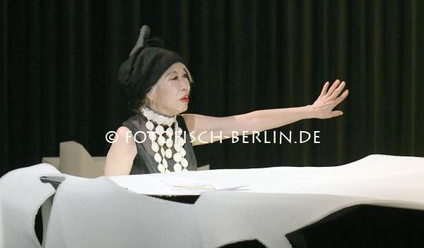 Ort: silent green Kulturquartier, Berlin. Aki Takase, Yui Kawaguchi. Titel: DIE STADT IM KLAVIER VI-ACCENTO. Urauffuehrung: 16.12.2022. Konzept, Choreografie , Tanz: Yui Kawaguchi. Konzept, Komposition, Klavier: Aki Takase. Buehnenbild & performative Architekturen: Gabi Schillig Licht, Technik: Fabian Bleisch Im Bild: Aki Takase, Yui Kwaguchi