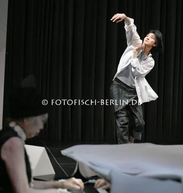 Ort: silent green Kulturquartier, Berlin. Aki Takase, Yui Kawaguchi. Titel: DIE STADT IM KLAVIER VI-ACCENTO. Urauffuehrung: 16.12.2022. Konzept, Choreografie , Tanz: Yui Kawaguchi. Konzept, Komposition, Klavier: Aki Takase. Buehnenbild & performative Architekturen: Gabi Schillig Licht, Technik: Fabian Bleisch Im Bild: Aki Takase, Yui Kwaguchi