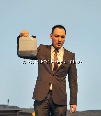 Ort: Hebbel am Ufer, hau2 Premiere: 27.04.2011 Stefan Kaegi (Rimini Protokoll) Titel: BODENPROBE KASACHSTAN Konzept und Regie: Stefan Kaegi (Rimini Protokoll) Video Design: Chris Kondek Musik: Christian Garcia Buehne: Aljoscha Begrich Licht: Sven Nichterlein Mit: Elena Panibratowa, Gerd baumann, Heinrich Wiebe, Helene Simkin, Nurlan Dussali Foto: Nurlan Dussali Abdruck oder Veroeffentlichung nur mit Namensnennung und Honorar. Belegexemplar ist erwuenscht
